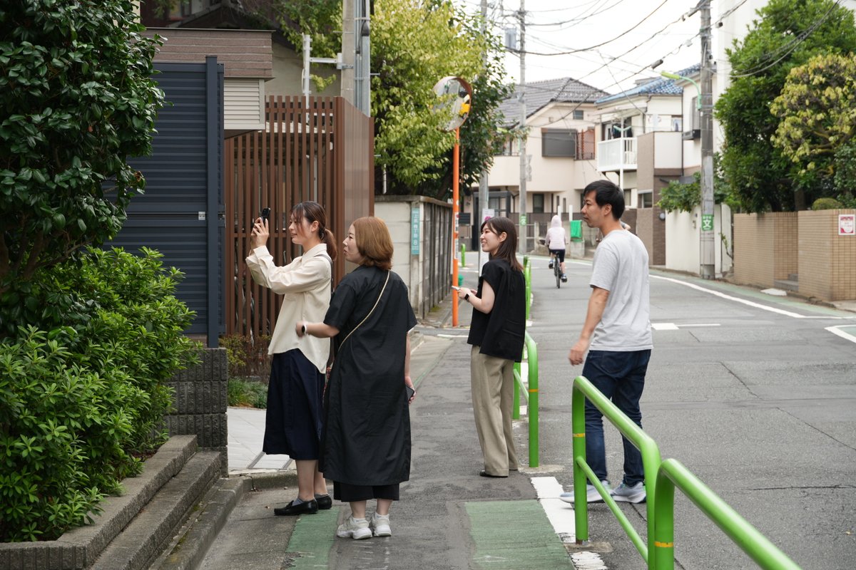 まず、上馬・駒沢の特徴をとらえる手がかりとして、クリストファー・アレグザンダーの「パタン・ランゲージ」の考え方を引用しました。参加者は「通り抜けできる路地」「道端の植栽」「人が立ち止まるカフェ前」など、日常の中にある特徴的な風景を観察し、それぞれの場所で「なぜ印象に残るのか」「どんな生活が想像できるか」をワークショップ用のアプリに吹き込みました。