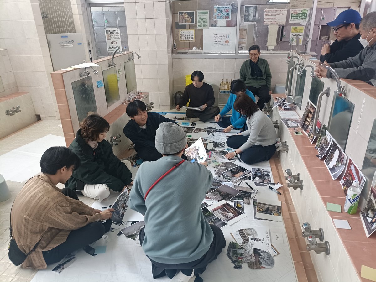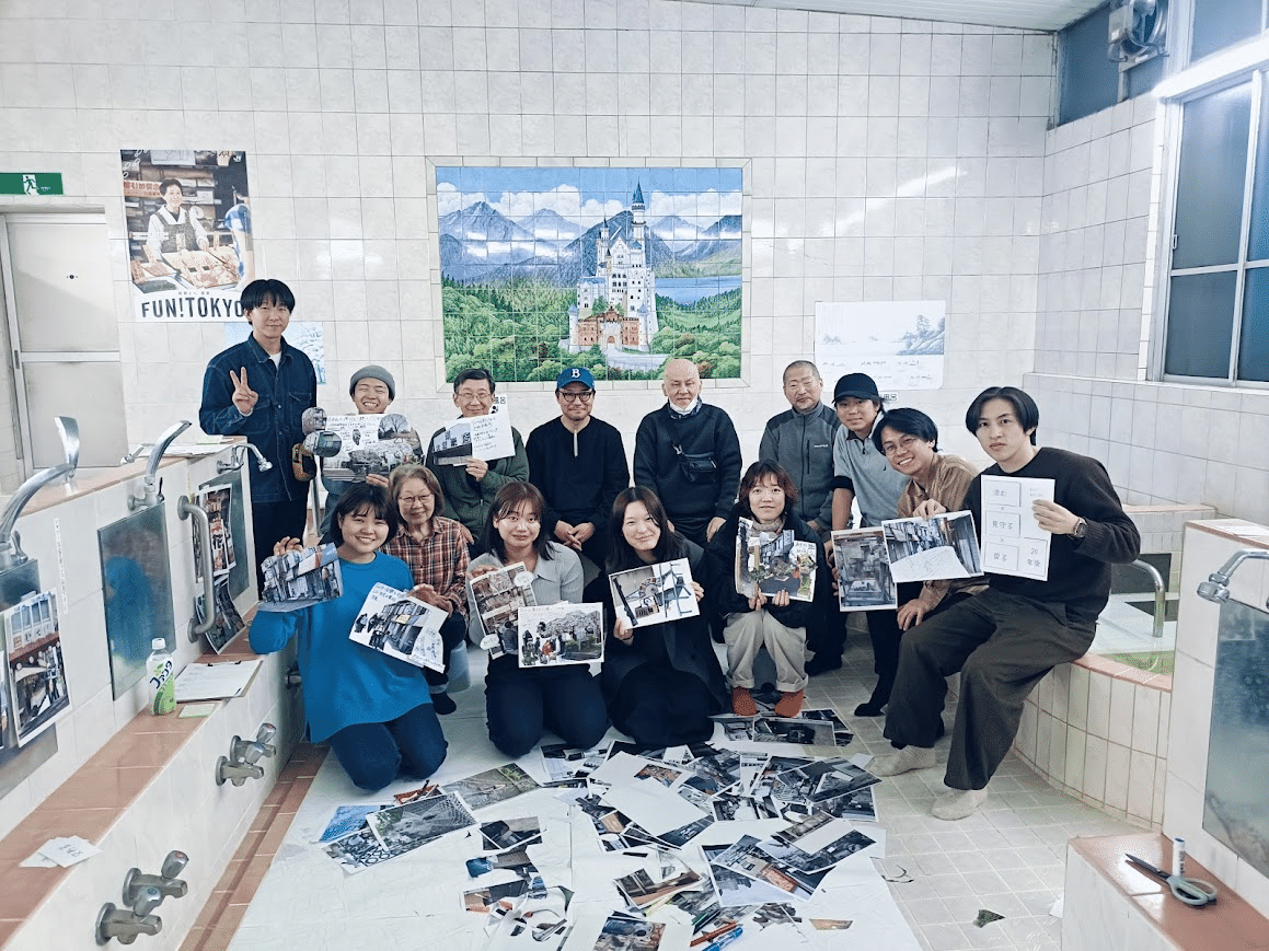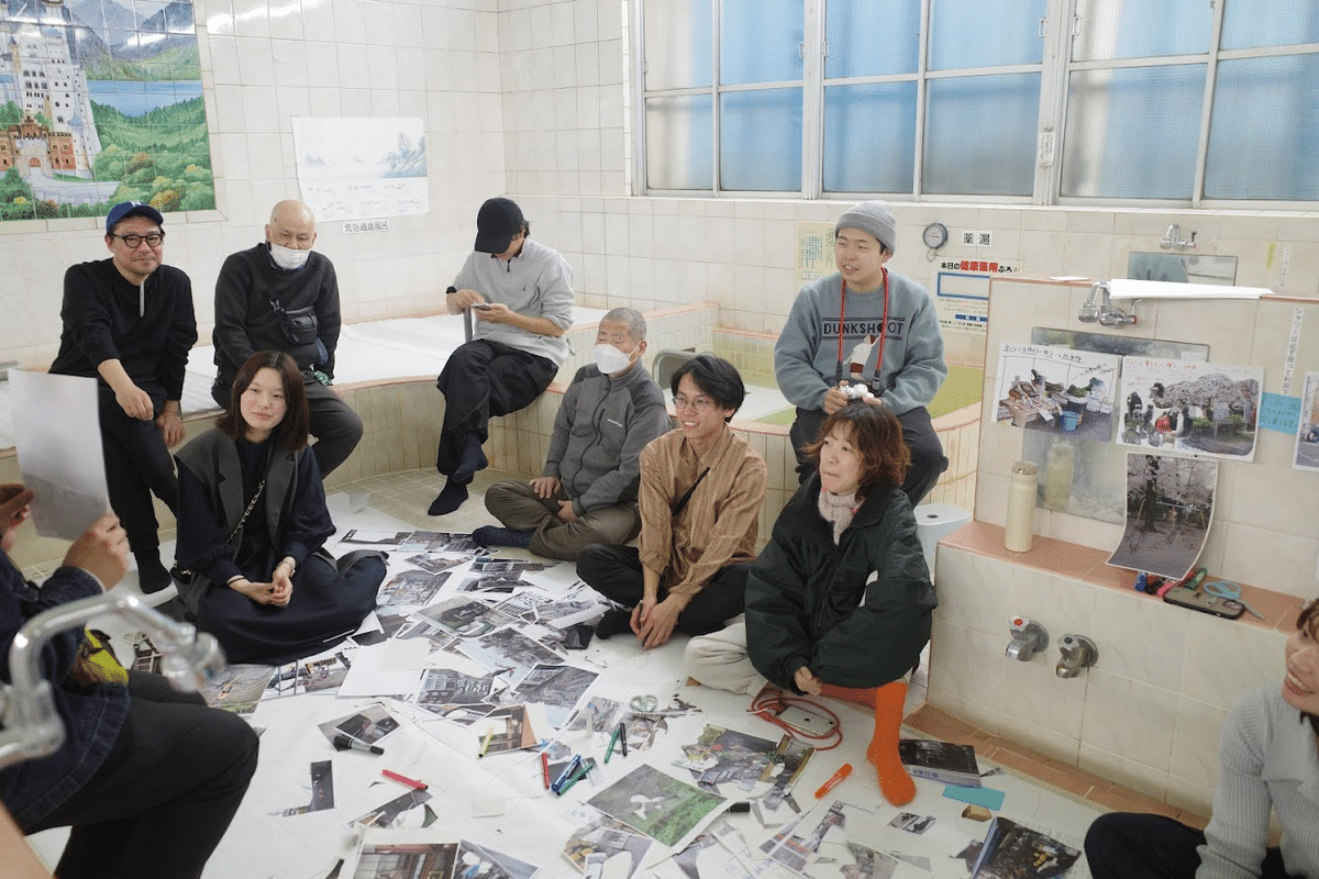 2025年3月31日、田端銀座商店街の銭湯「松の湯」にてTokyo Futurescape Studio #01 「暗渠商店街×風景コラージュ」を開催しました。建築系の学生や地元の方々など合計約20名が参加し、銭湯に地図と写真を広げながら、コラージュで未来の風景を制作していきました。