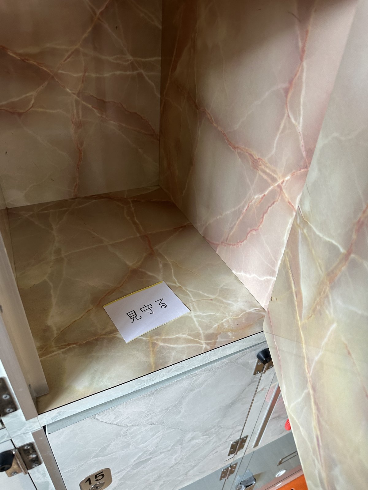 未来冒険ワークショップでは、銭湯という会場らしさを生かし、動詞カードや時間カードを1枚ずつ脱衣所のロッカーに入れ、鍵をかけました。参加者はロッカーのカギを4本選び、動詞カード3枚、時間カード1枚を確保します。