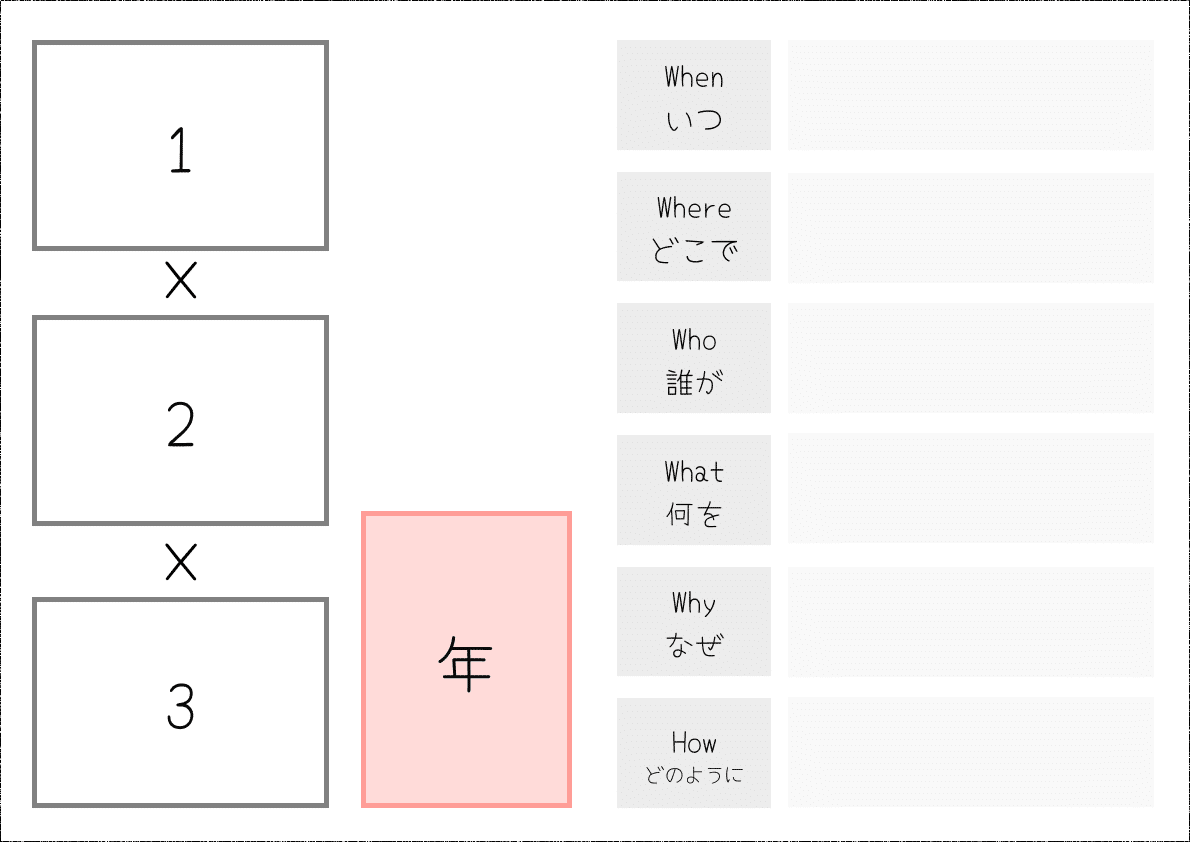 参加者はまず動詞カード3枚、時間カード1枚を選びます。次に3人グループを作り、その中でそれぞれの持つ時間カードに対して動詞を1枚ずつ出し、動詞カード3枚・時間カード1枚のセットを3つ作り直します。