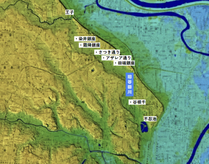 「暗渠商店街」は、暗渠化されたかつての谷沿いに中低層の商店街が連続するという意味では珍しいものの、豊かな地形を読み取って形成されてきた市街地であるという点においては、東京の典型的な日常風景であるとも言えます。そういった点に着目し、田端銀座商店街にて「暗渠商店街」というテーマでワークショップを開催しました。