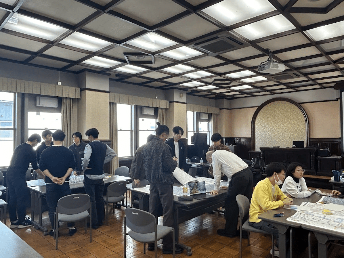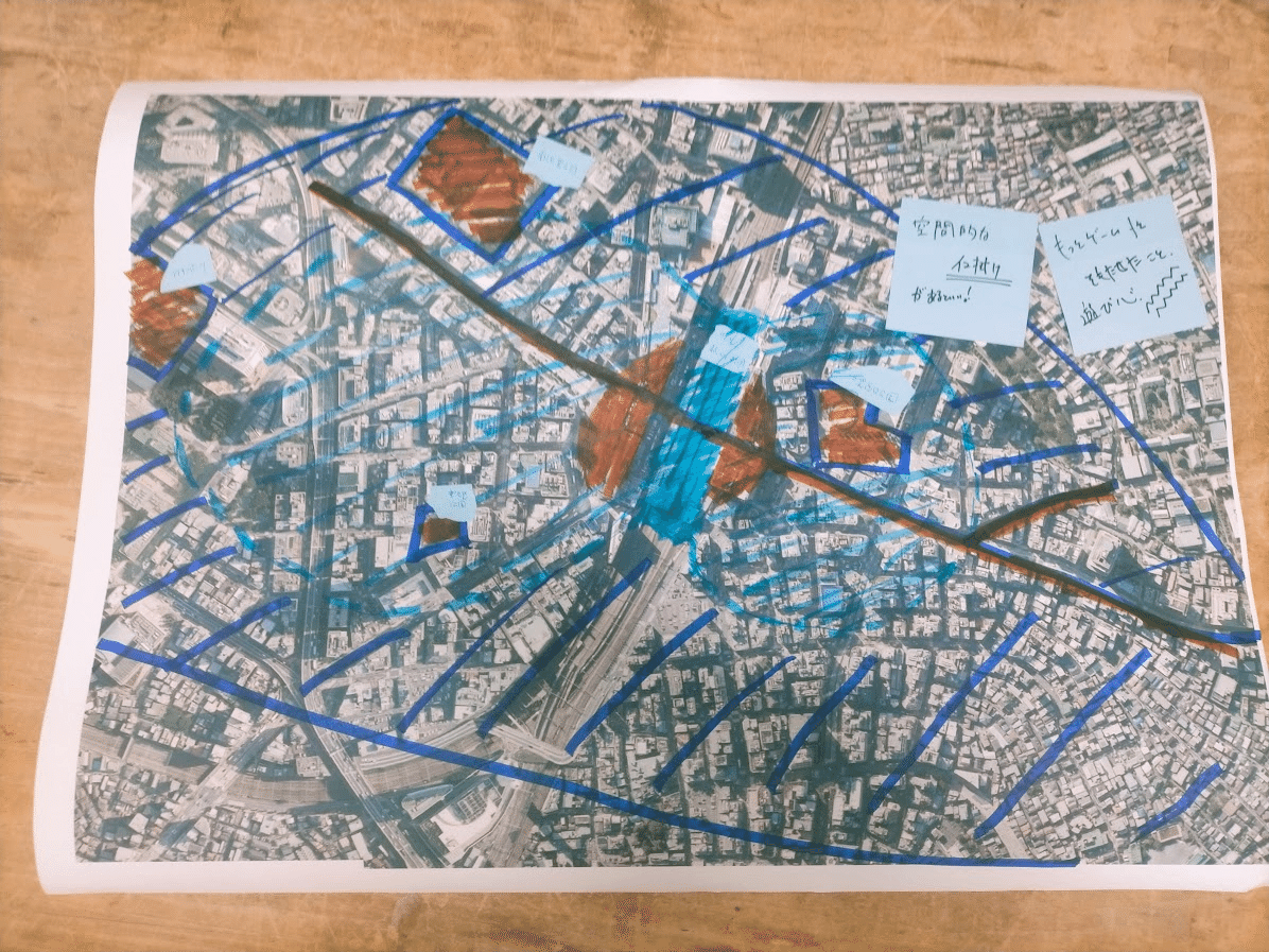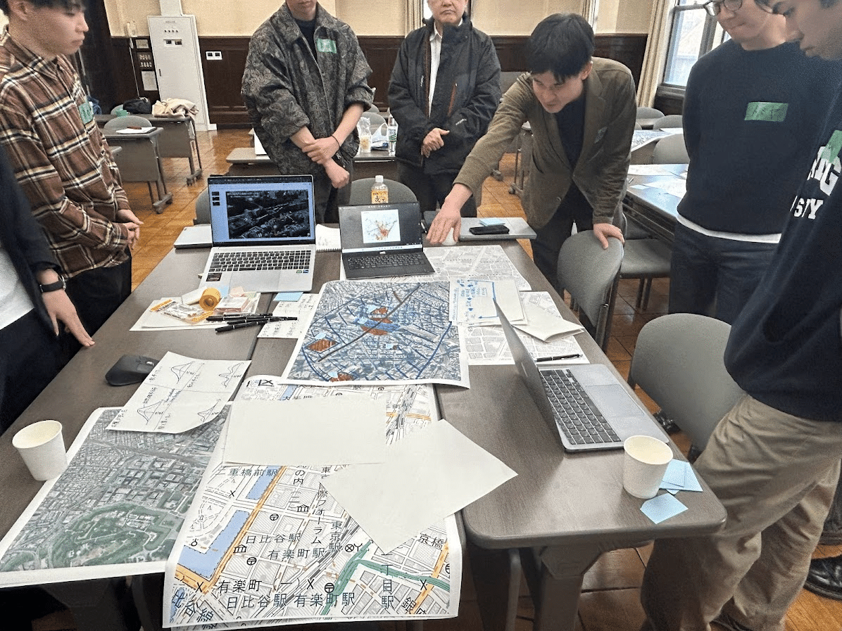 各班での議論が白熱してきたところで,先生方を含め順に各班の考えの方針をお互いに発表しました.同じエリアを選んでいても,班によってどのようにウォーカブルとデータを結びつけていくのか,都市の中のどの要素に着目するのかなど,異なる視点を持っていました.お互いの考えを客観的に捉えるとともに,より深い考えになるように率直な意見を出し合う機会となりました.