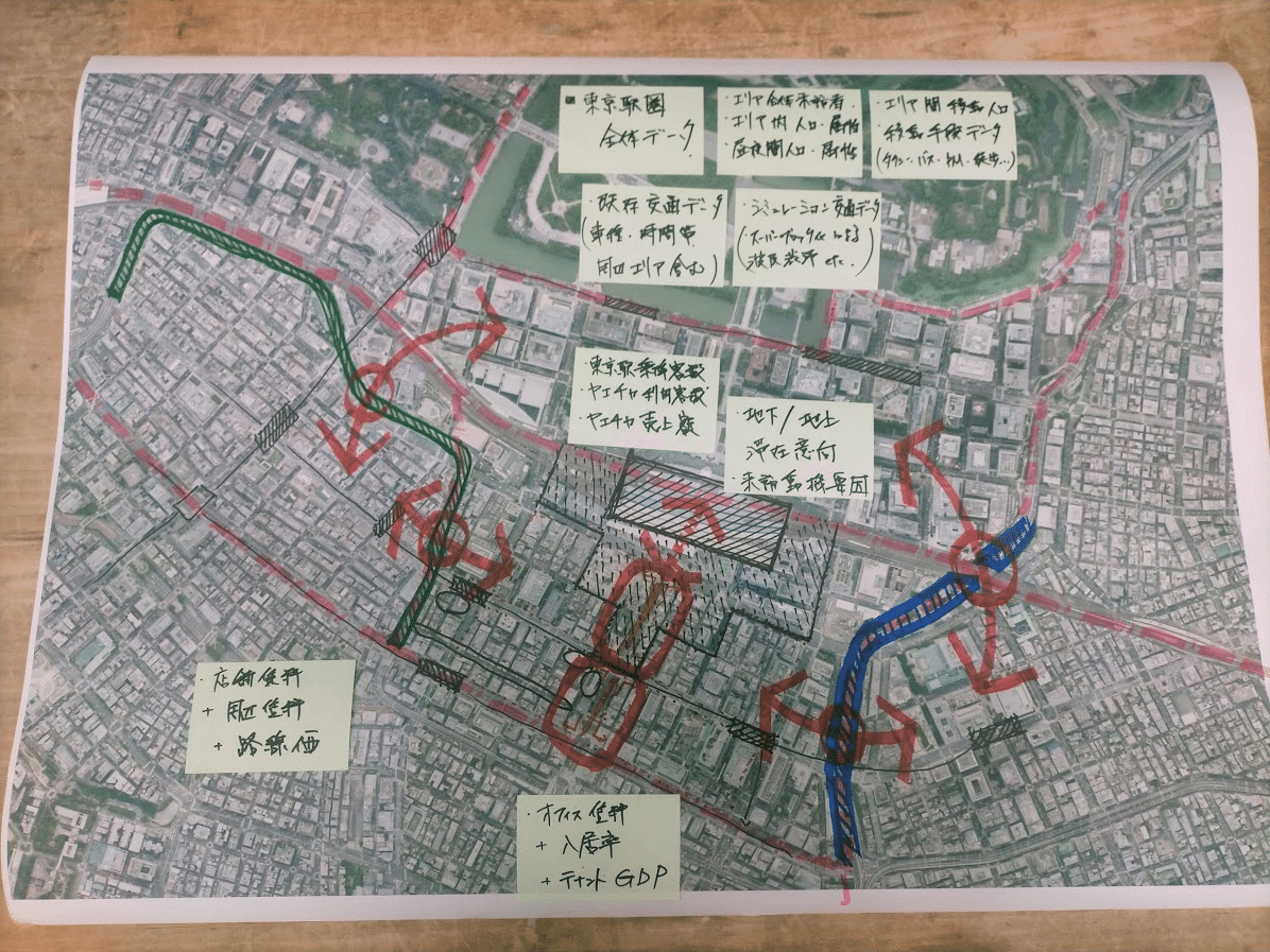グループ3 場所:東京駅,八重洲エリア テーマ:東京駅周辺,特に八重洲エリアの活性化 内容:東京の中でのエリア間競争に対抗するべく,八重洲地下街と地上をウォーカブルにつなぐことで八重洲エリアの活性化を実現する.