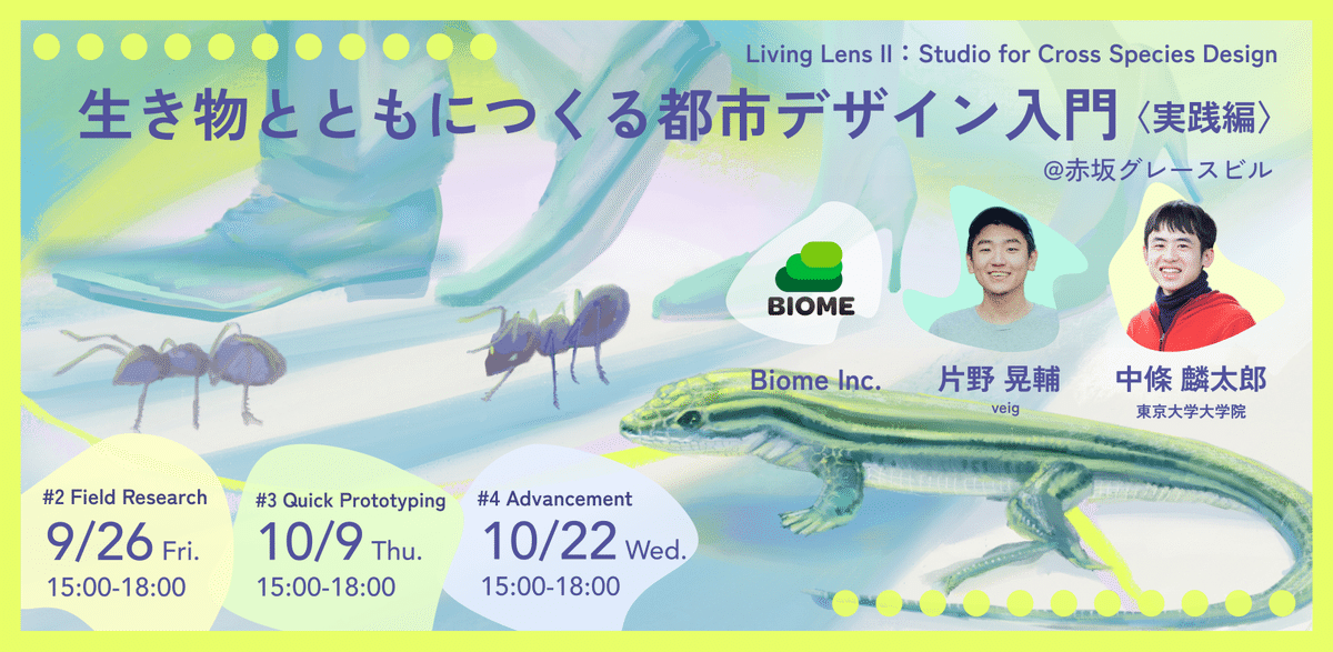 中條さん: 今回のテーマは生物多様性です。とはいっても生き物の生態や種数だけに注目するのではなく、「人間と生き物の交差するポイントを、いかに面白くつくれるか」になります。都市の中でいかに人間と生き物が楽しく暮らしていくか?に焦点を当てていくのです。 今回のイベントは、これまで2回目まで続けてきた連続プログラム「生き物とともにつくる都市デザイン入門」の第三回でもあり、これまでの知見を踏まえた、より洞察にとんだ制作物が出てくることを期待しています。 とはいえ、三回目からの参加も大歓迎です。生き物や自然が好きな人も、とにかくAIで何か作ってみたい!という人も、両方楽しめるイベントとなっておりますので、奮ってご参加ください。