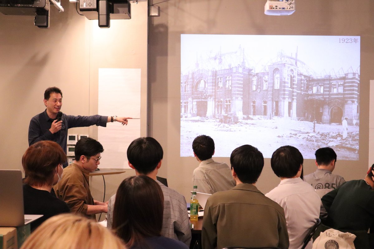 プログラム終了後には、竹中工務店様のご厚意で、今回の会場である堀ビルの内部を案内していただきました。築90年の名建築である堀ビルは、歴史的価値を保ちながら現代的な用途に適応させるプロジェクトとして、竹中工務店のレガシー活用事業の一環であり、文化財としての意匠性と構造や設備的課題の解決を共存させており、とても感心しました。また、堀ビルの屋上には東京のど真ん中とは思えない、緑豊かでとても居心地の良い空間が広がっていました。