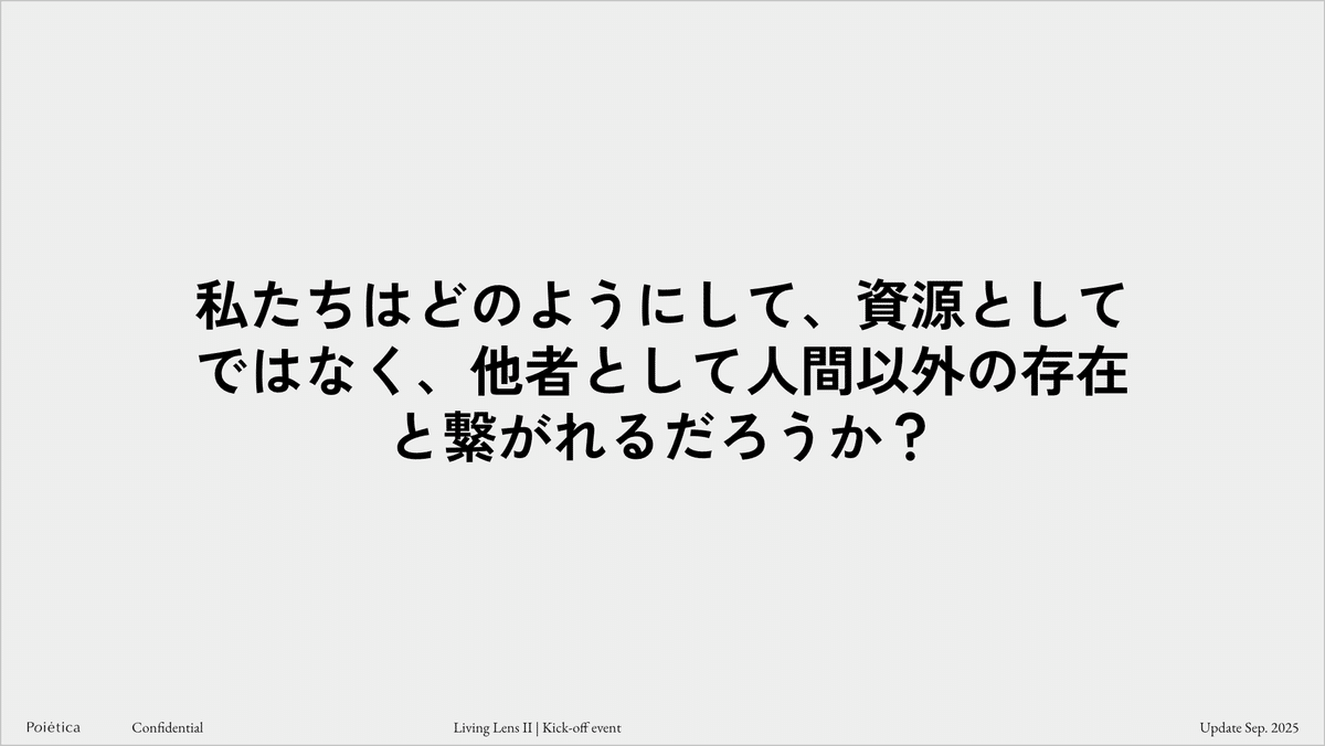 奥田さんは事前インタビューでも、複雑な生態システムを単純な問題に落とし込み、その解決策や最適化に終始してしまうことの限界に触れていました。客観的に問題を解くのではなく、自然に対する主観的な認識の仕方・関わり方を変える試み。奥田さんが実施するアプローチには、人間が自然に介入してきたことで起きている課題を捉え直し、そこに別の視点を提案する柔軟さがありました。