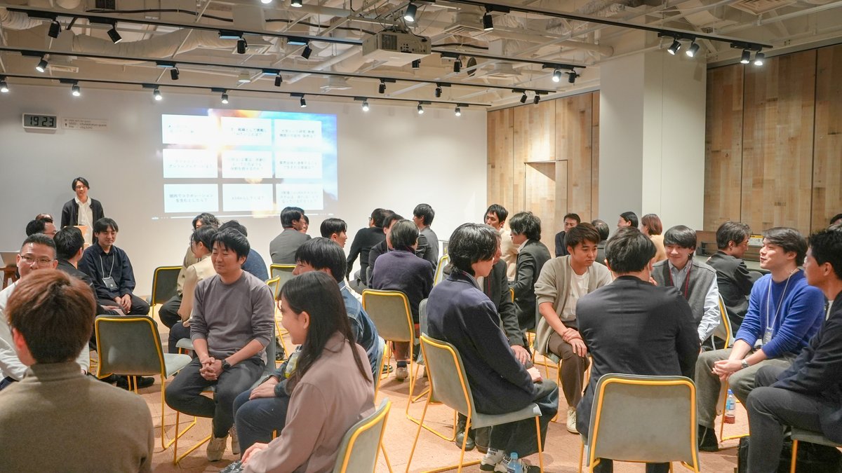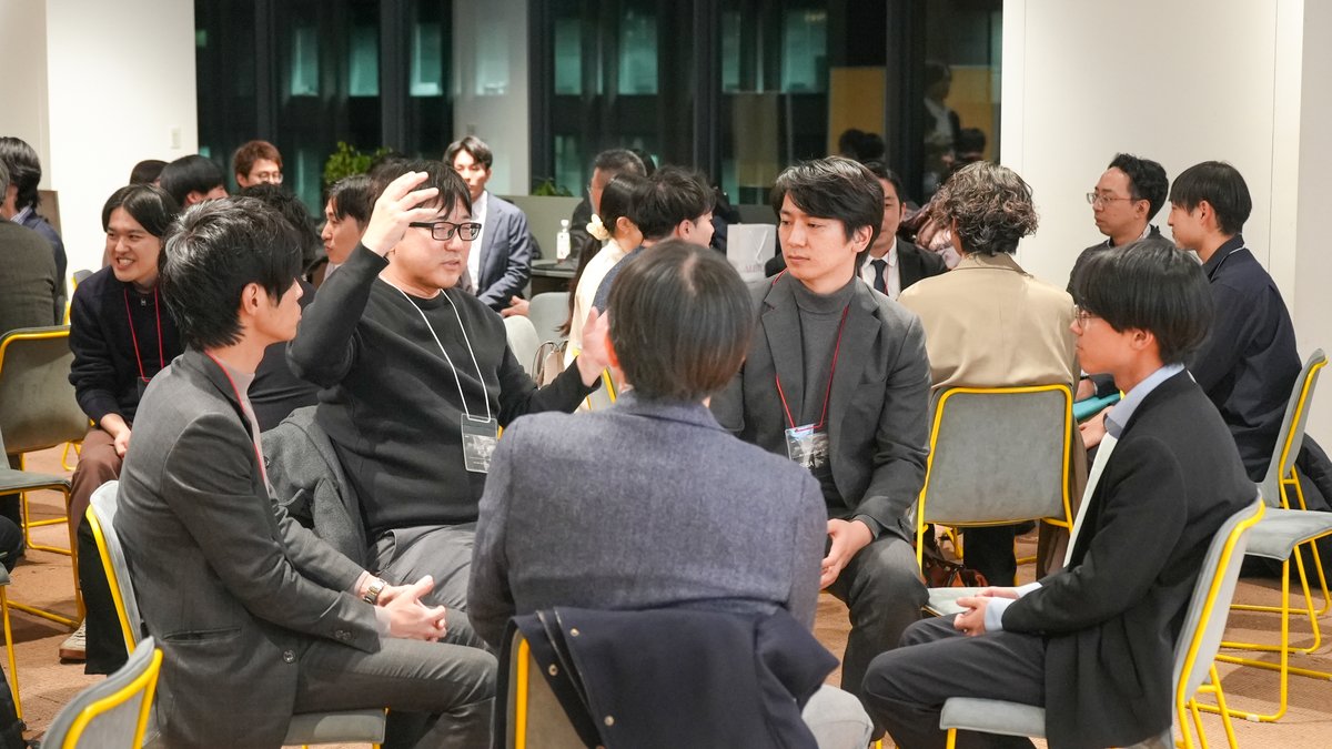 Intro Talkでは、企業の皆様と学生が6つのグループに分かれ、プロジェクト紹介やコラボレーションの可能性について意見を交わしました。初対面ながらも熱意ある議論が展開され、有意義な時間となりました。