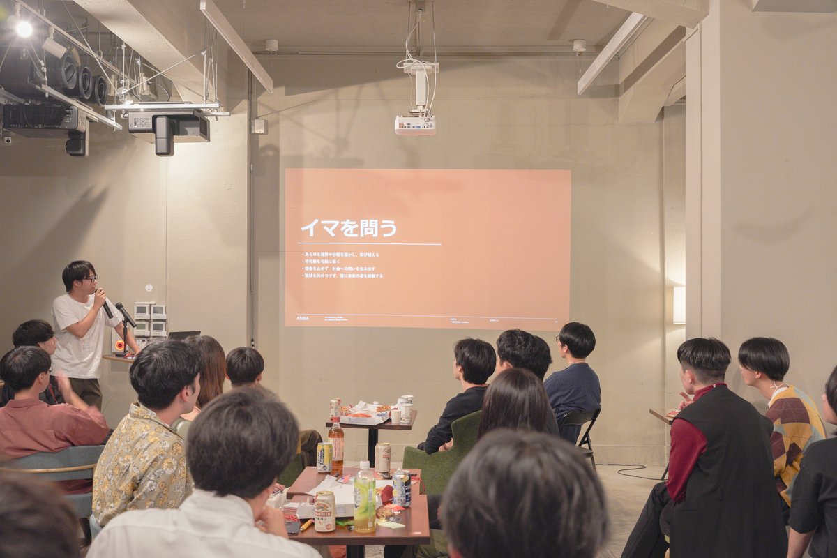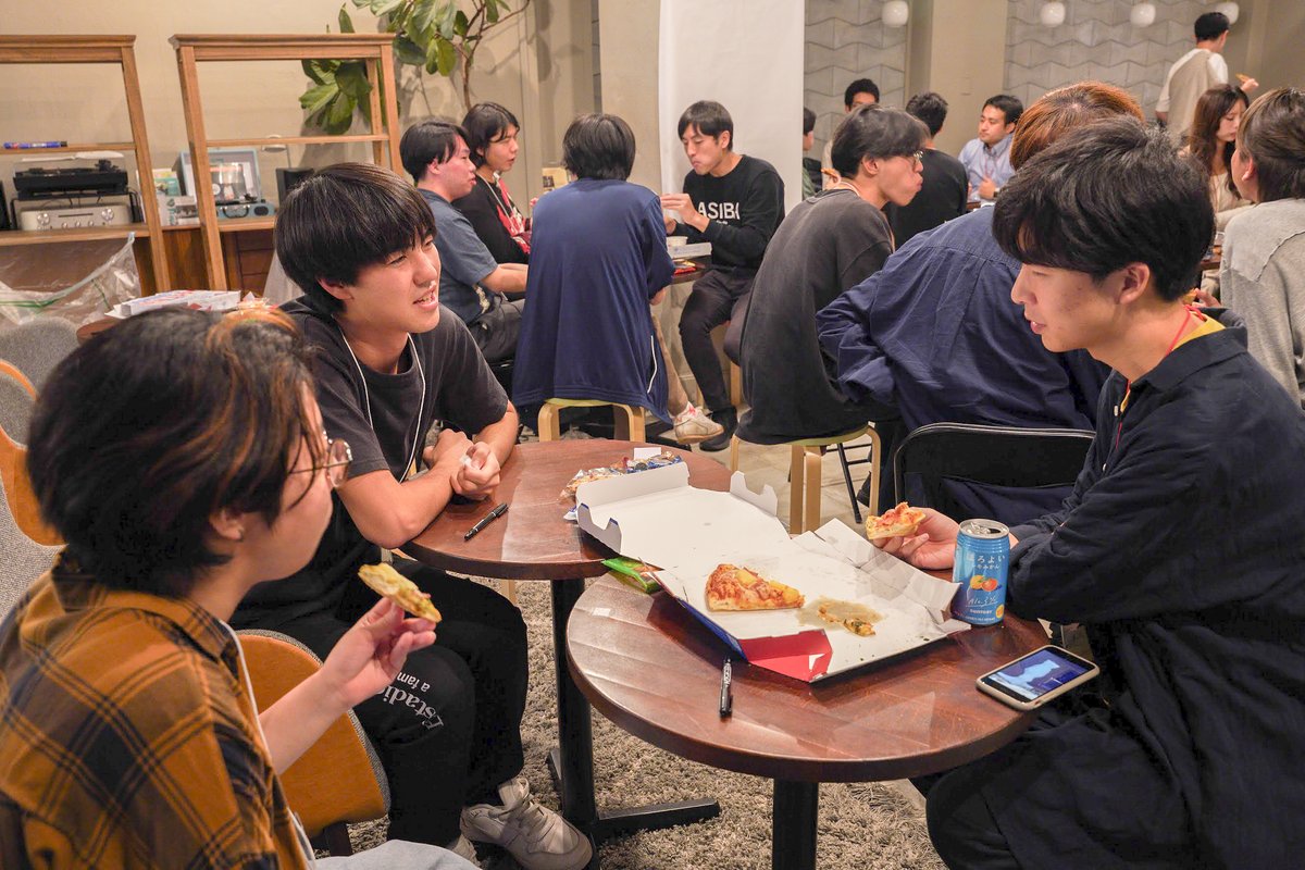 ピザを片手に自分のプロジェクト・これからASIBAについて楽しく議論し、ここで生まれる新たな「繋がり」を生みました。