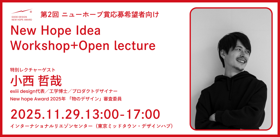 日本デザイン振興会とASIBAは、11月29日に「New Hope Idea Workshop+Open lecture(exiii design代表 小西 哲哉)」を開催します。詳細・申し込みは以下のリンクよりご覧ください。