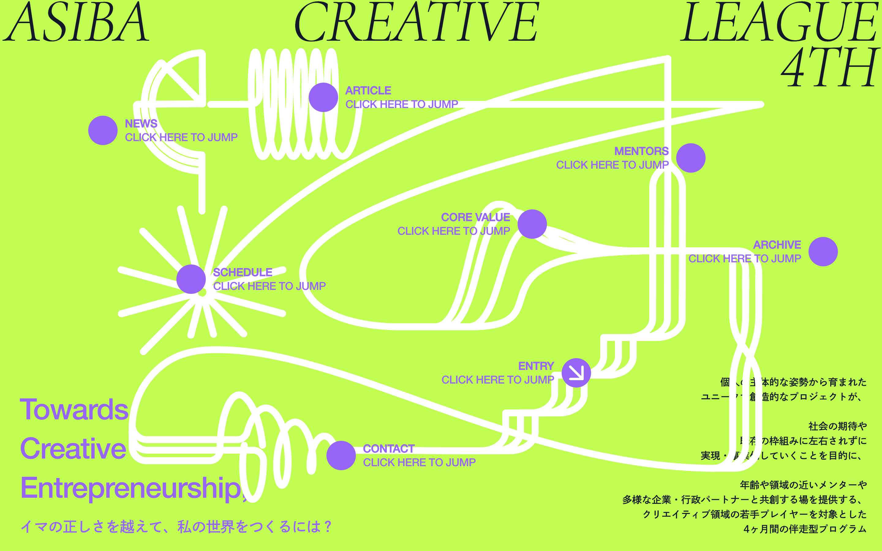 一般社団法人ASIBA(所在地:東京都文京区、代表理事:二瓶雄太)は、創業時から中心的に進めてきた若手クリエイターを対象とした伴走型プログラム「ASIBA Creative Incubation Program」を、この度「ASIBA Creative League」へと名称を変更しました。また、2026年4月から始動する4期生の募集を本日より開始いたします。