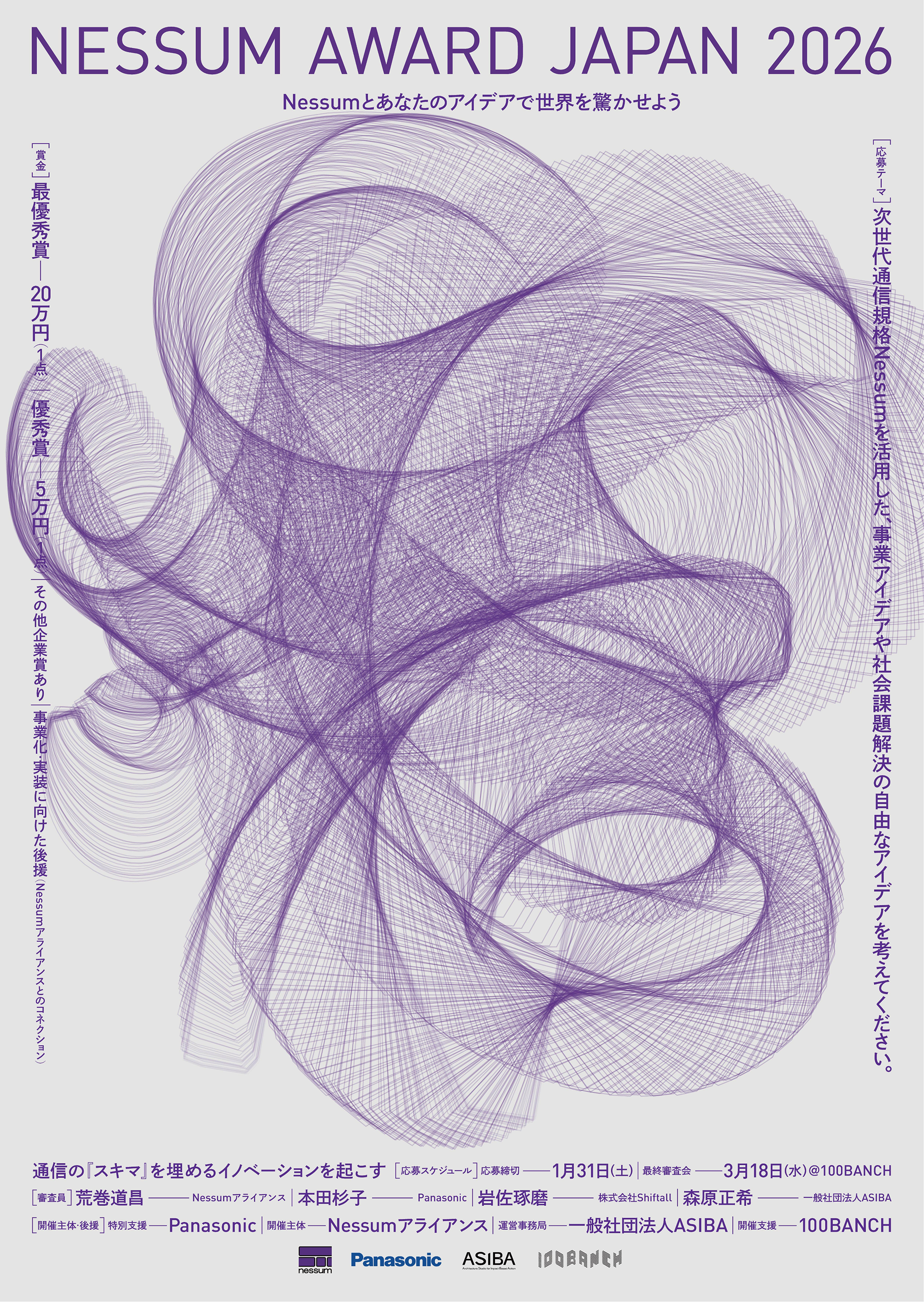 スマートメーターなどの領域で、既存技術では届かないIoT社会の「スキマ」を埋める通信規格「Nessum」。その技術力は確かな一方で、専門用語が飛び交う難解さゆえに、新たな領域への広がりが課題となっていました。ASIBAは本技術のリブランディングプロジェクトに参画。単なる視覚的なデザイン刷新にとどまらず、トークイベントの企画や、未知の活用アイデアを募る「Nessum Award JAPAN 2026」の開催を通じ、高度な技術をより多くの人に愛される形へと翻訳する支援を行っています。